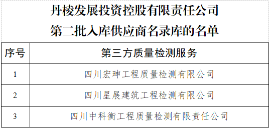 附件:丹棱發(fā)展投資控股有限責任公司第二批入庫供應商名單