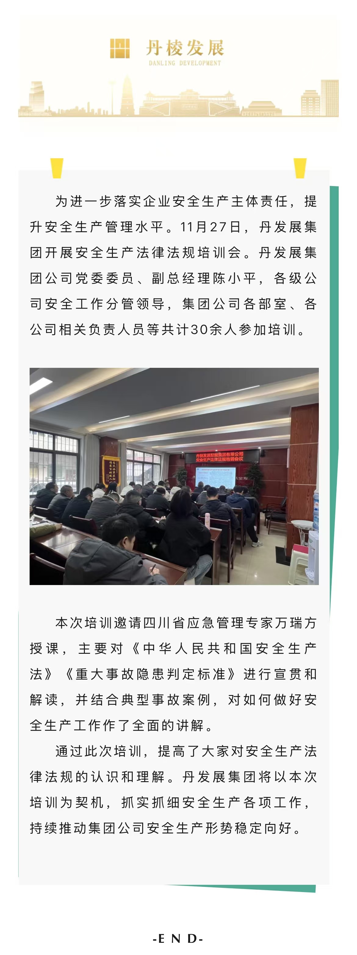 強(qiáng)化安全法律意識(shí),筑牢安全生產(chǎn)基石丨丹發(fā)展集團(tuán)公司開展安全生產(chǎn)法律法規(guī)培訓(xùn)會(huì)